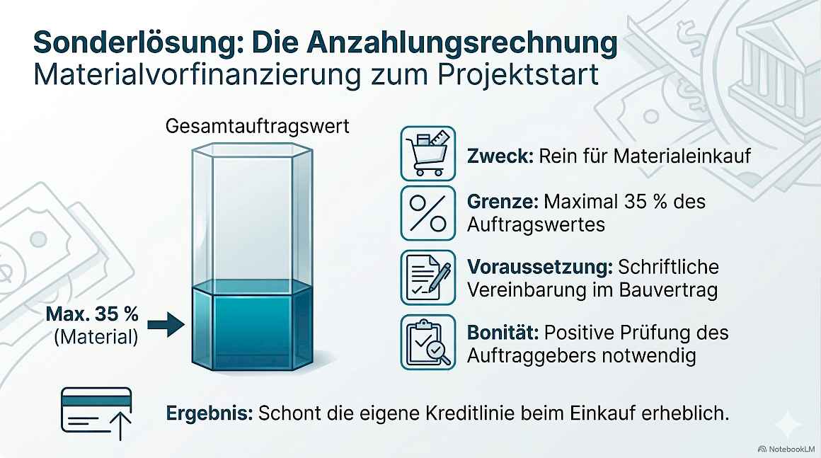 - Material und Lohnkosten müssen häufig 6–10 Wochen vor Zahlungseingang vorfinanziert werden