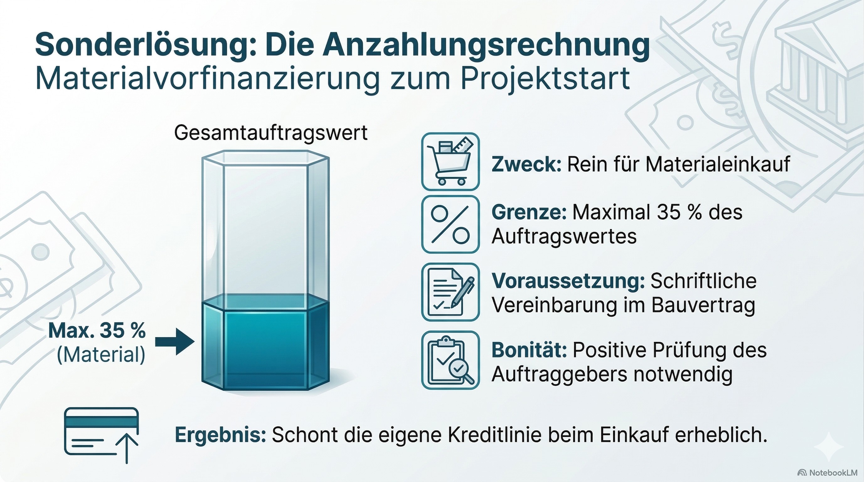 Auch Anzahlungsrechnungen für den Materialeinkauf können unter bestimmten Voraussetzungen verkauft werden.