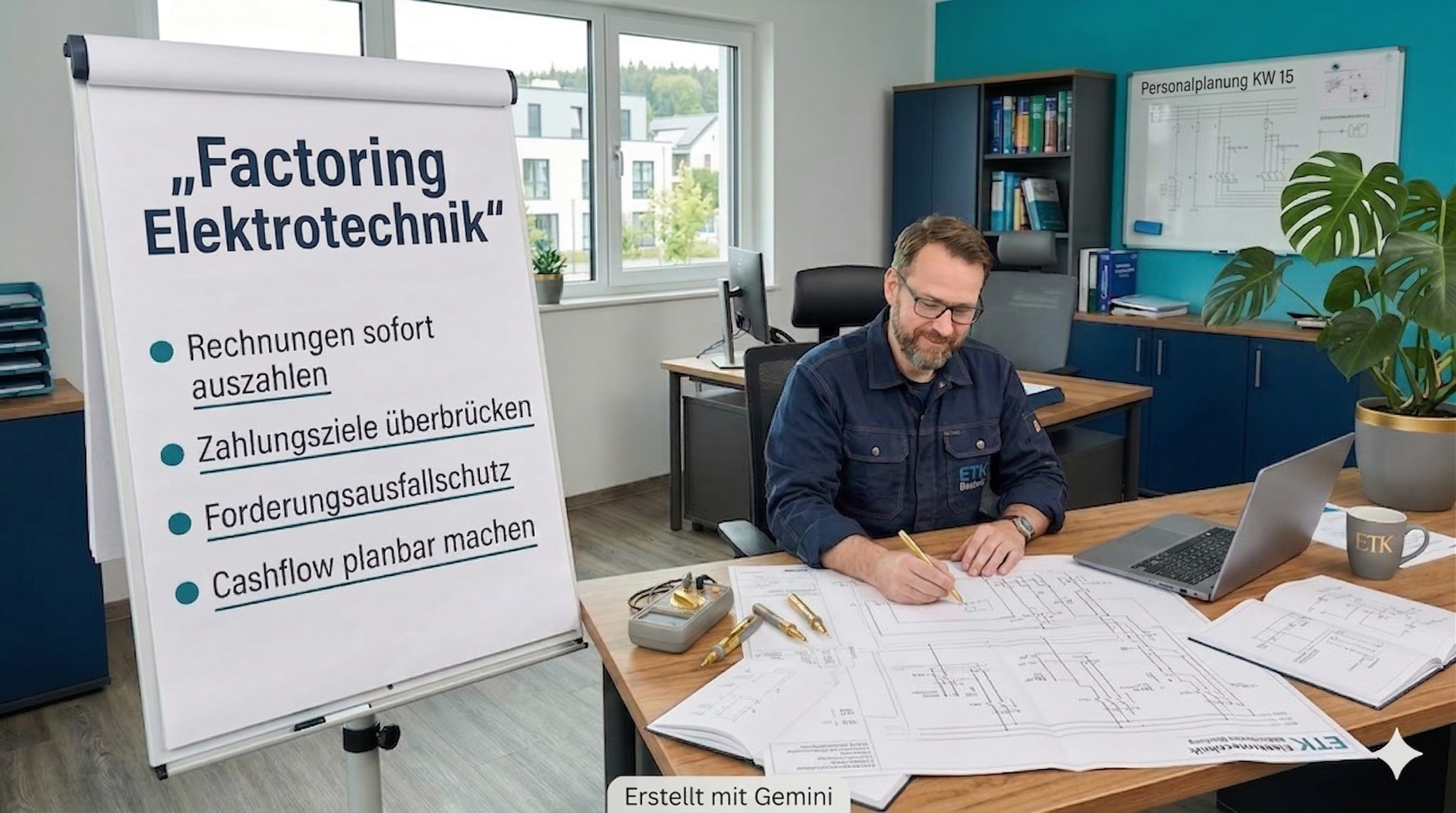 Elektrotechnikbetriebe stehen unter doppeltem Druck: Material und Montagezeiten müssen vorfinanziert werden, während Auftraggeber aus Bau und Industrie immer längere Zahlungsziele durchsetzen. Factoring gibt Finanzverantwortlichen die Kontrolle über den Cashflow zurück.