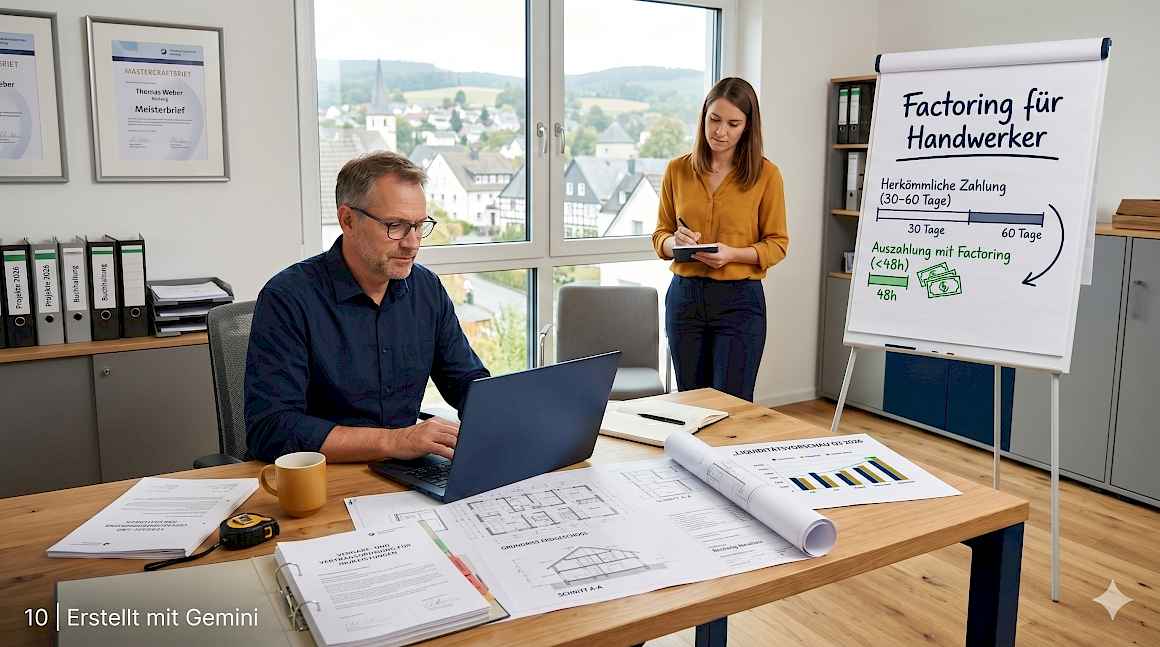 Der Factor übernimmt das Ausfallrisiko vollständig – relevant für Handwerksbetriebe, die mit Generalunternehmern oder Bauträgern zusammenarbeiten. Wer Factoring speziell für das Handwerk im unabhängigen Vergleich prüft, findet Anbieter mit VOB-Erfahrung und branchenspezifischen Konditionen.