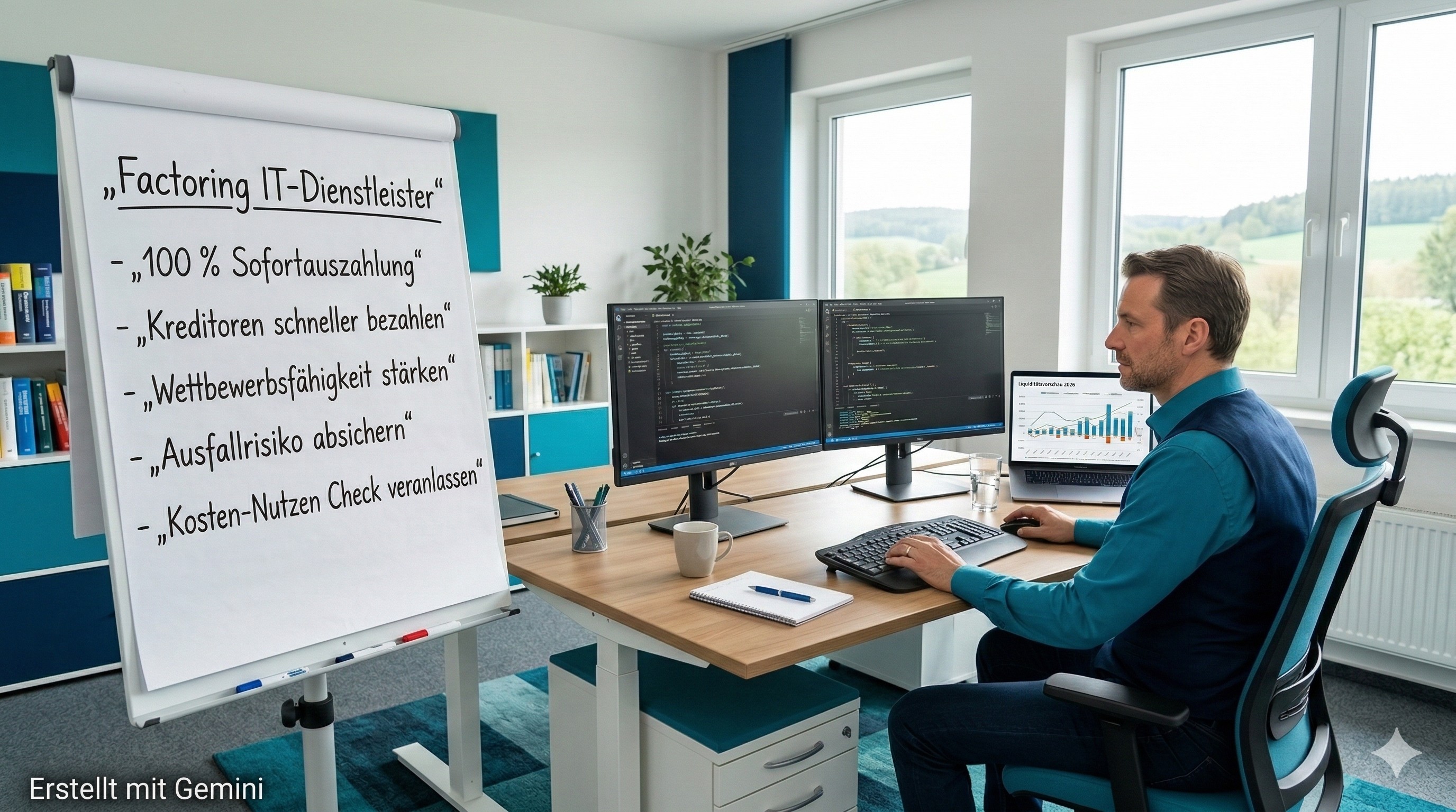 IT-Dienstleister, Systemhäuser und Softwareunternehmen erbringen hochwertige Leistungen – und stellen dennoch fest, dass das Wachstum die Liquidität nicht automatisch mitwachsen lässt. Das Grundproblem ist strukturell: Projekte werden auf eigene Kosten durchgeführt, Freelancer, eigene Mitarbeiter und Sozialversicherungskosten wollen pünktlich bezahlt werden, Lizenzen und Hardware müssen vorfinanziert werden – während Unternehmenskunden mit Zahlungszielen von 30 bis 90 Tagen zahlen.