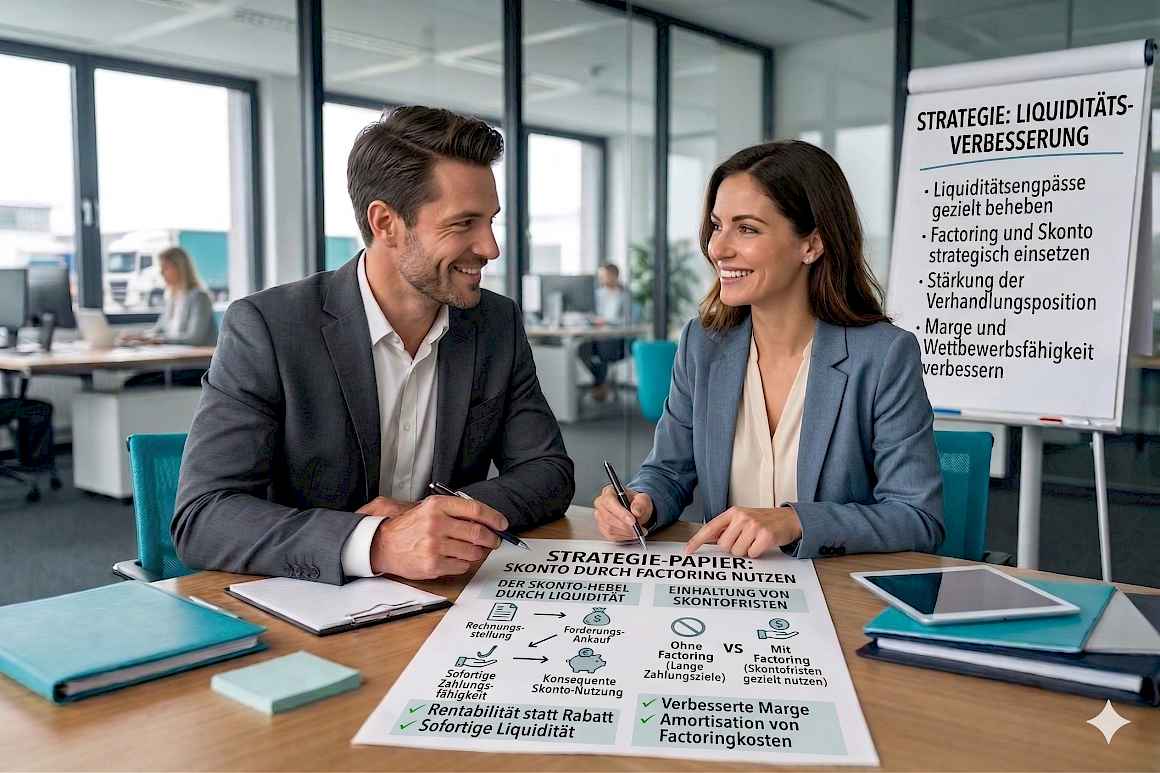 Wer nach Factoring Skonto, Skonto nutzen mit Factoring oder Skonto Liquidität sucht, erkennt schnell: Skonto ist kein kleiner Rabatt, sondern ein echter Renditefaktor. Rechnerisch entsprechen 2–3 % Skonto einer jährlichen Rendite im zweistelligen Bereich.